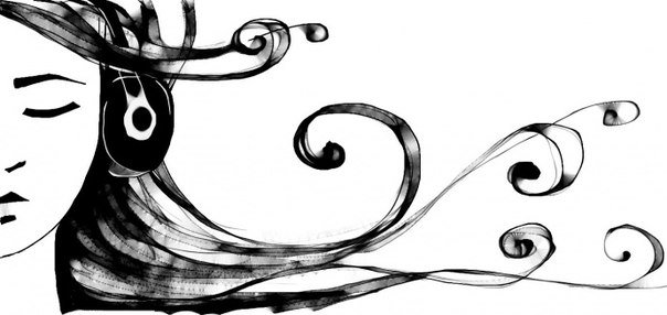 ![Девушка в наушниках рисунок]()