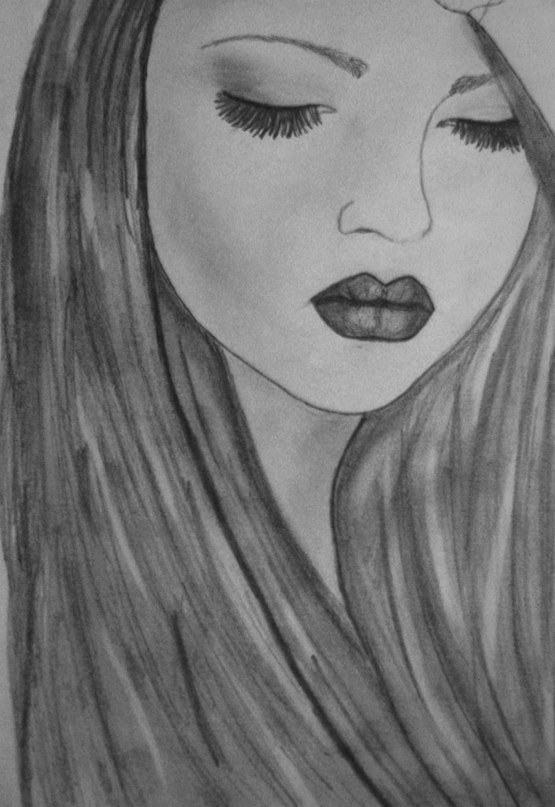 ![Девушка с закрытыми глазами рисунок карандашом]()