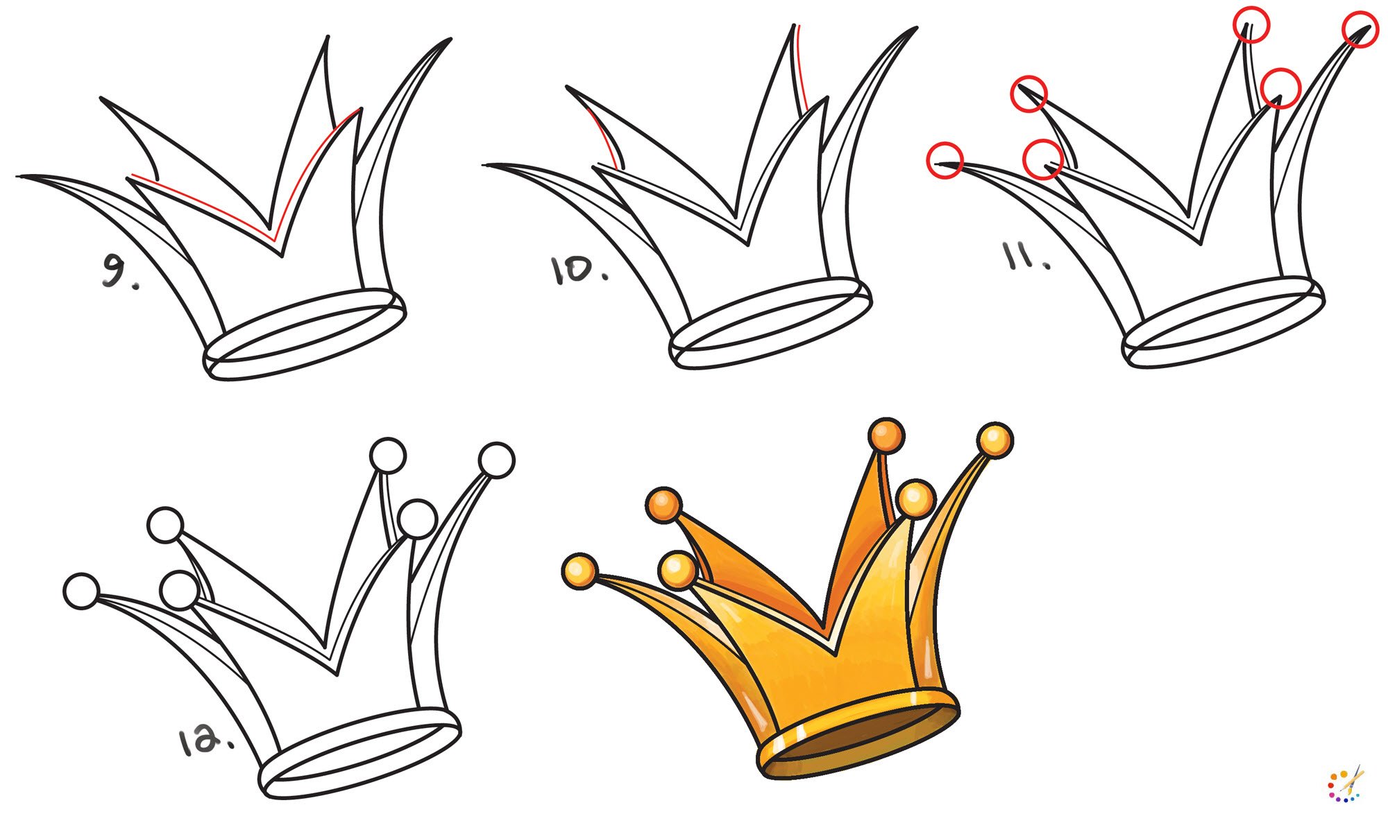 ![Поэтапное рисование короны]()
