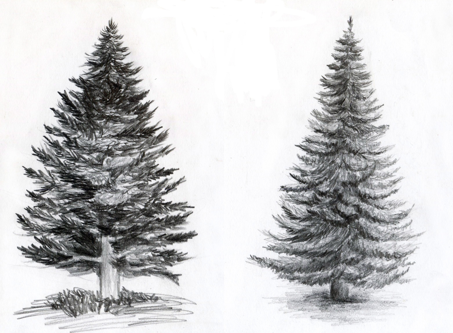 ![Набросок елки карандашом]()
