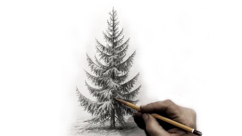 Рисование ели карандашом