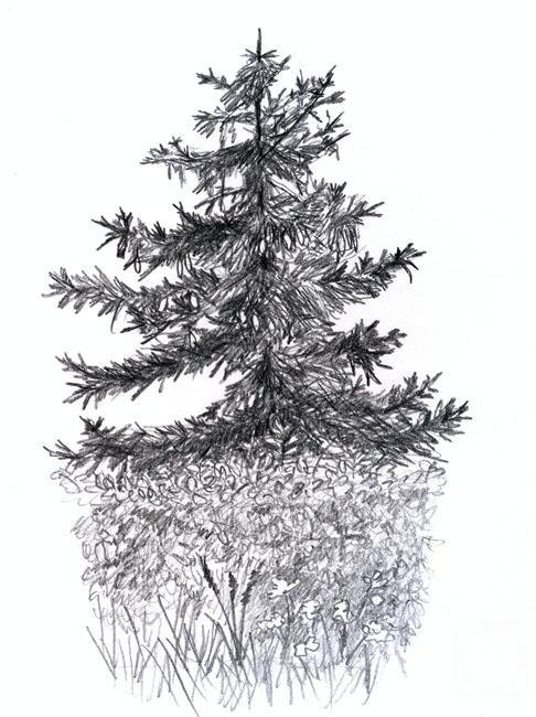 ![Хвойное дерево карандашом]()