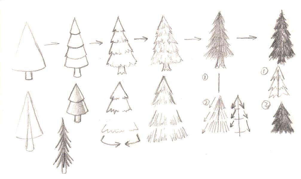 ![Эскизы елки карандашом]()