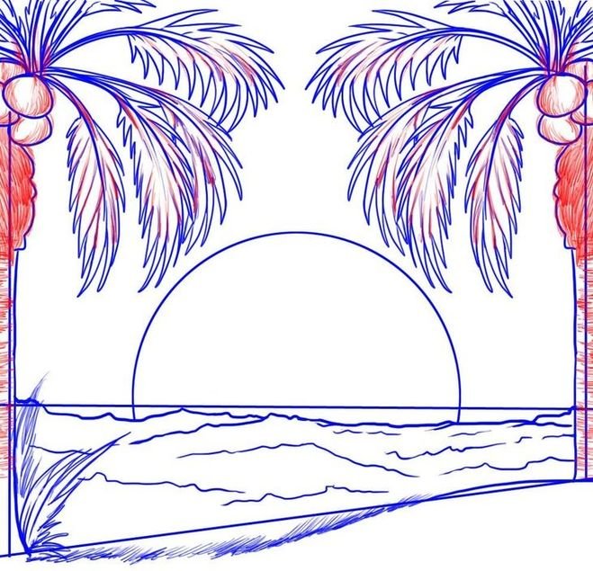 Поэтапное рисование пляжа