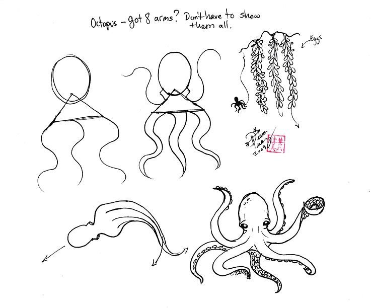 Как выглядит осьминог рисунок с карандашами или маркерами