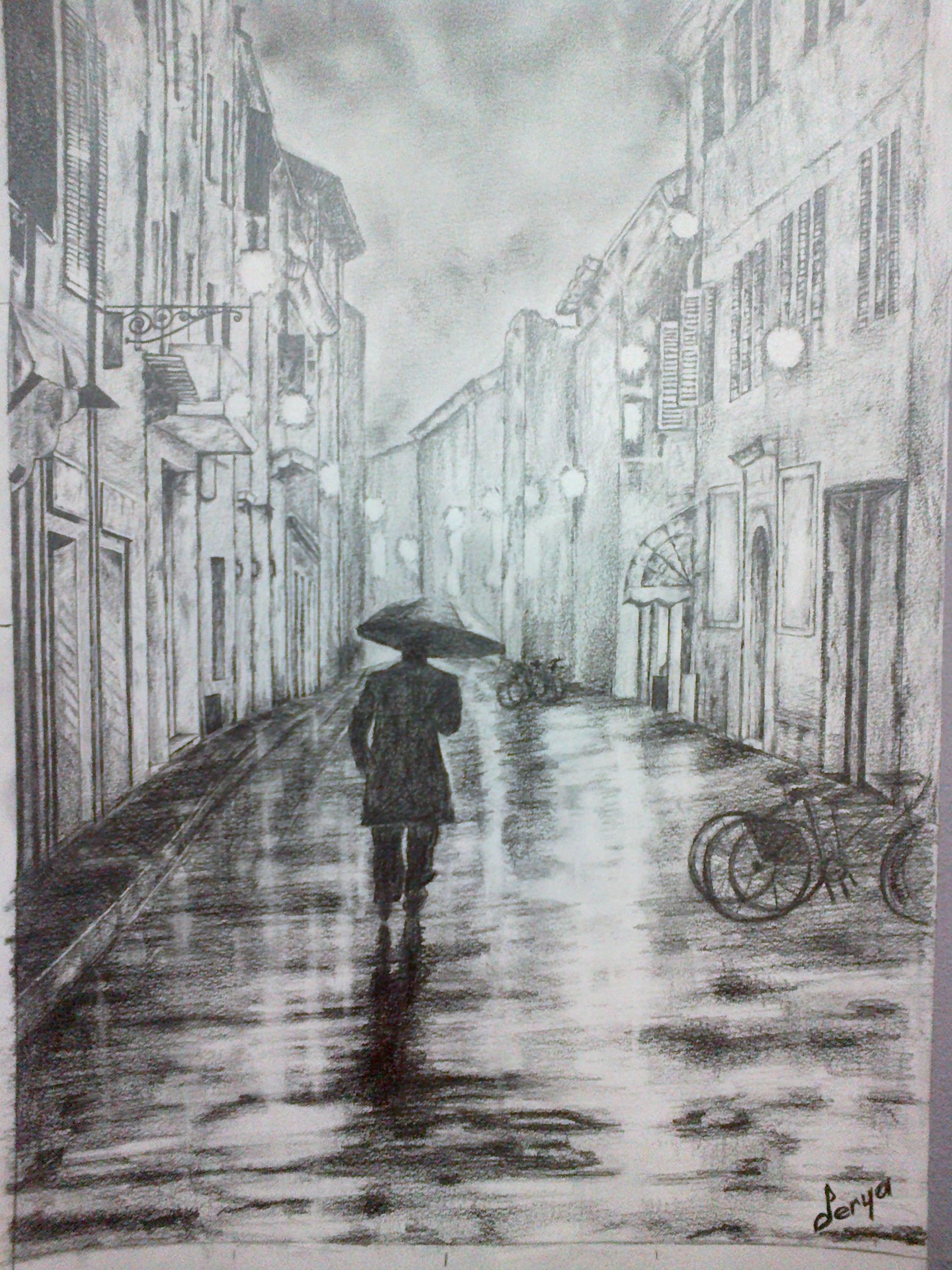 Насыщенный дождь падает с неба, создавая ритмичные струи, которые окутывают все вокруг. В этой серой и мокрой атмосфере одинокий человек продолжает свое творчество. Взяв простой карандаш в руку, он начинает создавать на бумаге свой уникальный мир. Он не обращает внимания на холод и влагу, потому что для него нет ничего важнее, чем его искусство. С каждым движением карандаша на бумаге, он передает свои эмоции и мысли, создавая живой и глубокий рисунок. Его кисточка – это сама природа, а дождевые капли играют роль вдохновения. Таким образом, под дождем, он становится не только мастером своей техники, но и создателем неповторимого произведения искусства, которое запечатлевает мгновение вечности и красоту дождевого дня.