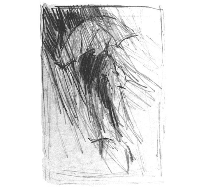 «Человек под дождём» (серия из 3-х рисунков) (е.Романова, т. Сытько)