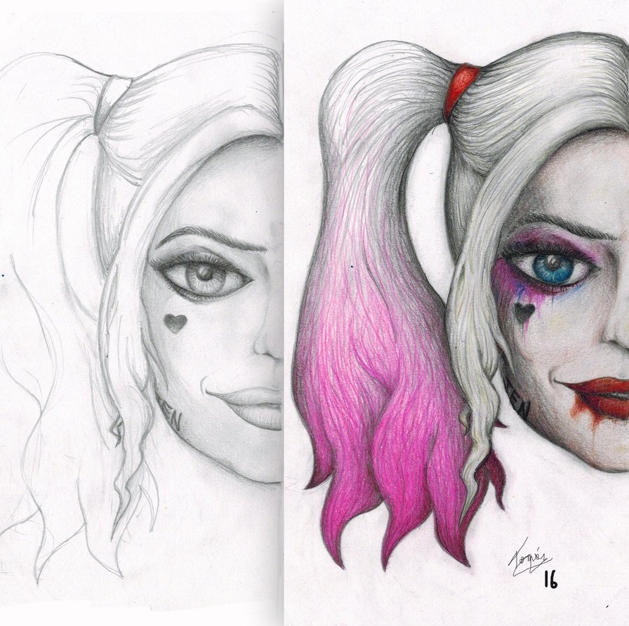 Харли Квинн рисунок карандашом