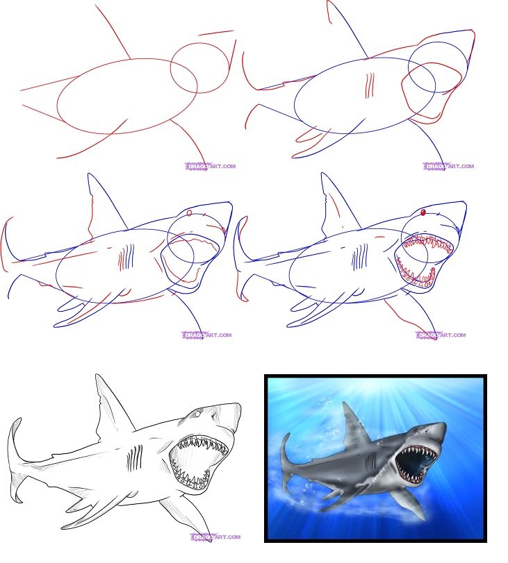 Простой рисунок акулы карандашом для детей – это отличное занятие, которое не только развивает их творческие способности, но и позволяет погрузиться в мир морских глубин. Вам потребуется всего несколько простых шагов: сначала нарисуйте овальную форму тела акулы, затем добавьте хвост и плавники. Очертите контур рта и глаз, а затем приступайте к деталям: зубы, жабры и текстура кожи. Не забудьте про тени и оттенки, чтобы придать рисунку объем. Таким образом, ваш ребенок сможет создать забавный и привлекательный рисунок акулы, который точно порадует его и окружающих.