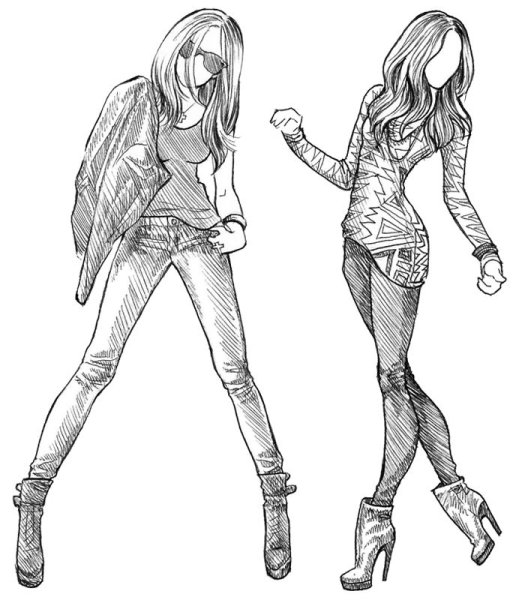 Девушки в полный рост для срисовки карандашом