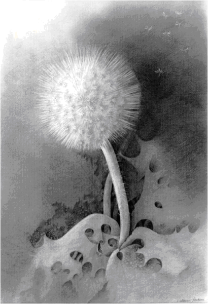 ![Одуванчик карандашом штрихами]()