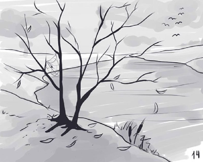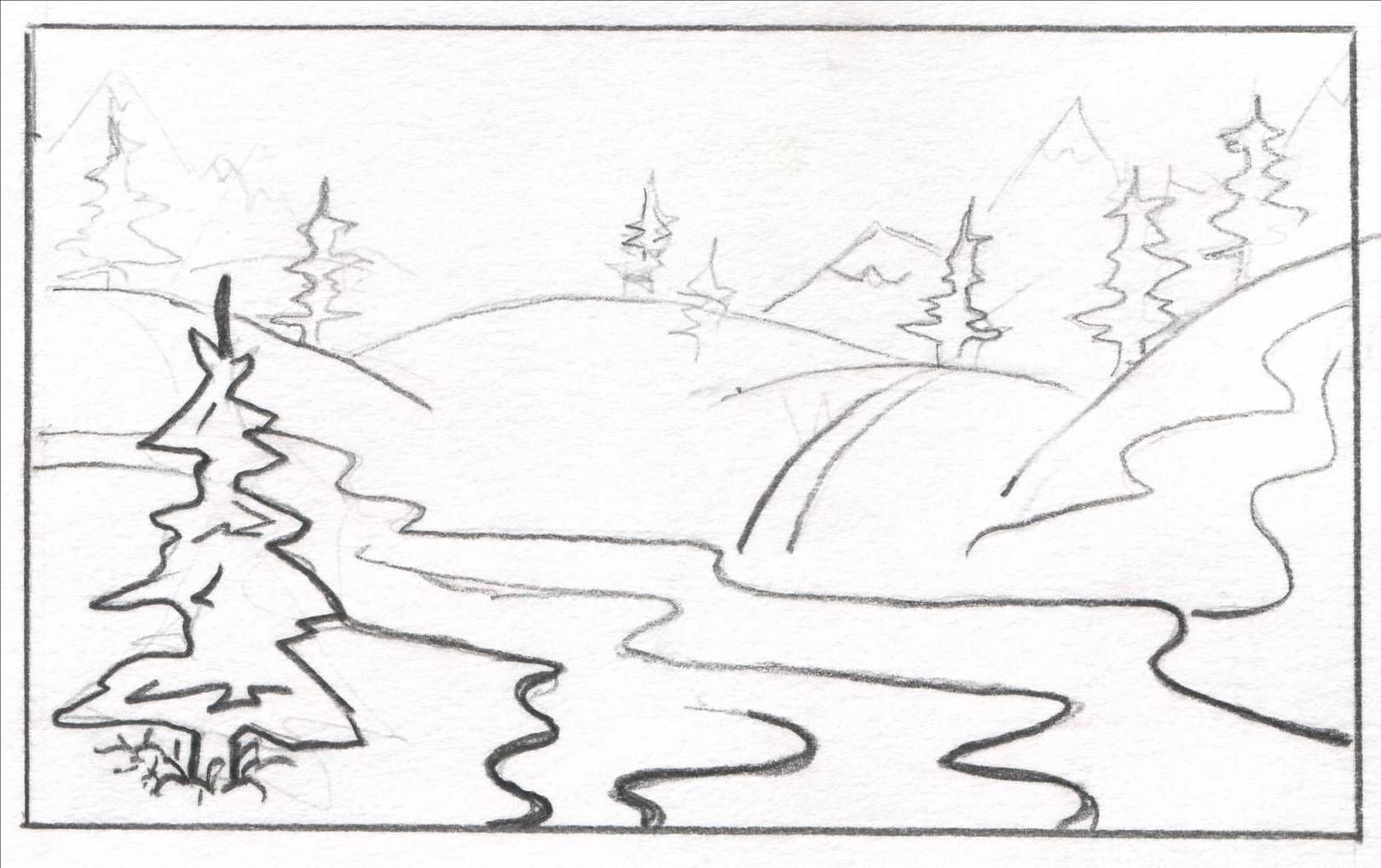 Пейзаж карандашом легкий для срисовки легко