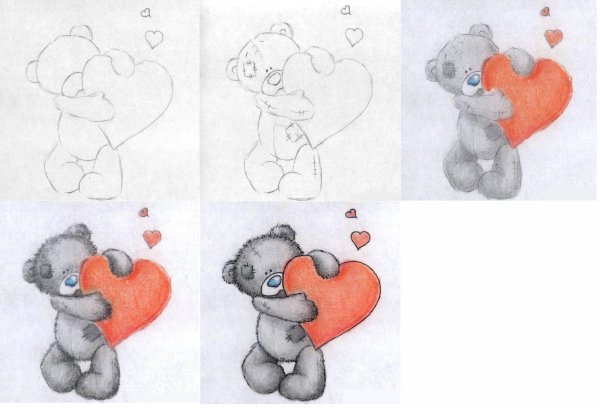 Мишка с сердечком рисунок карандашом