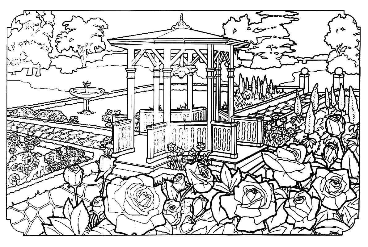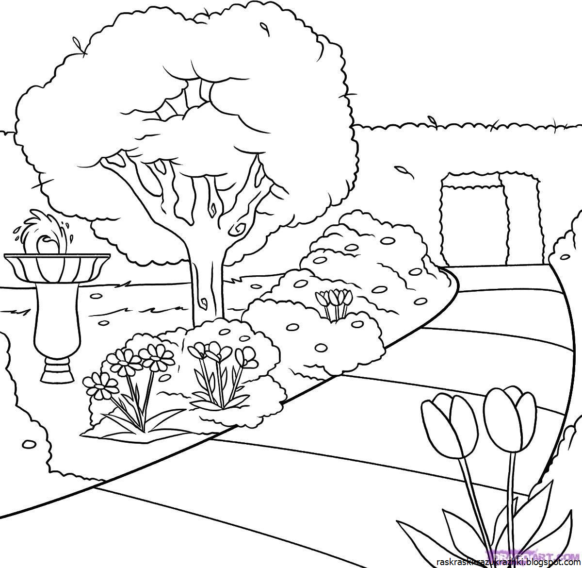 Раскраска цветочный сад