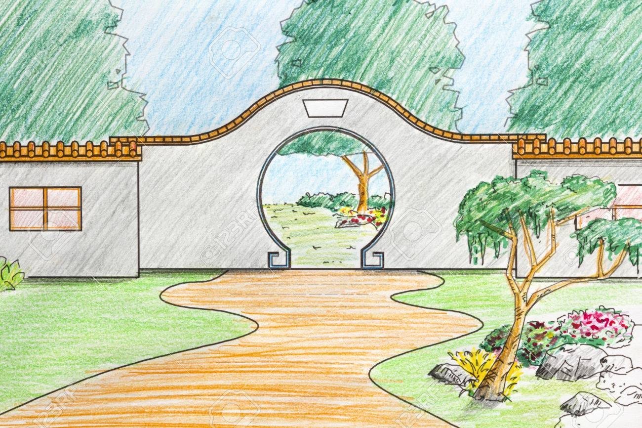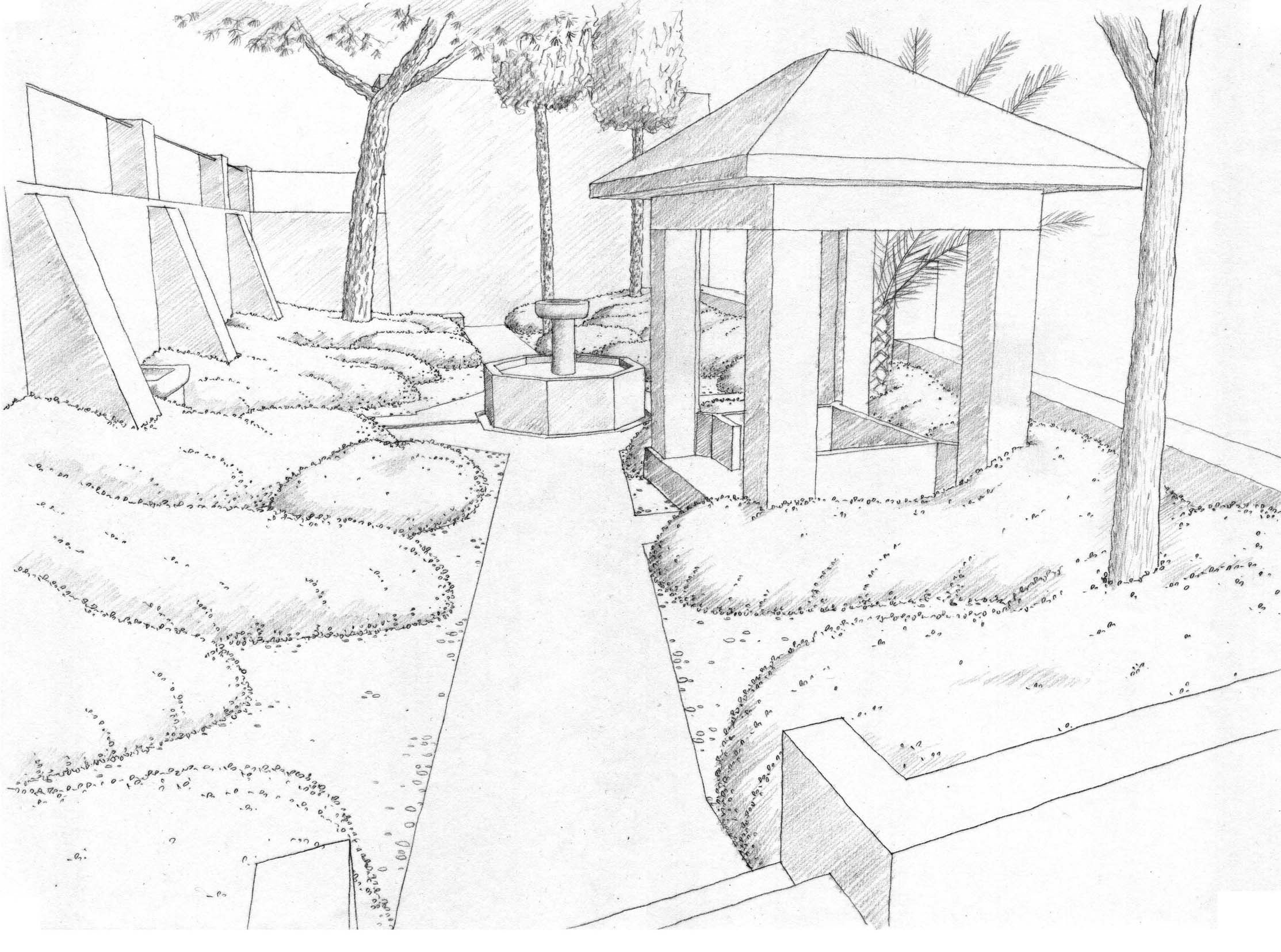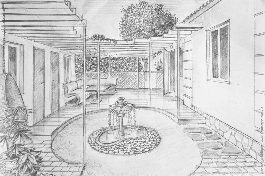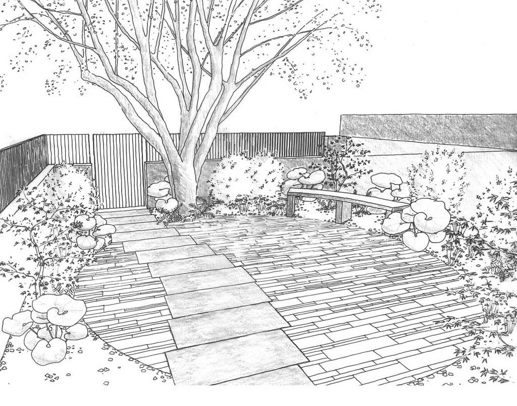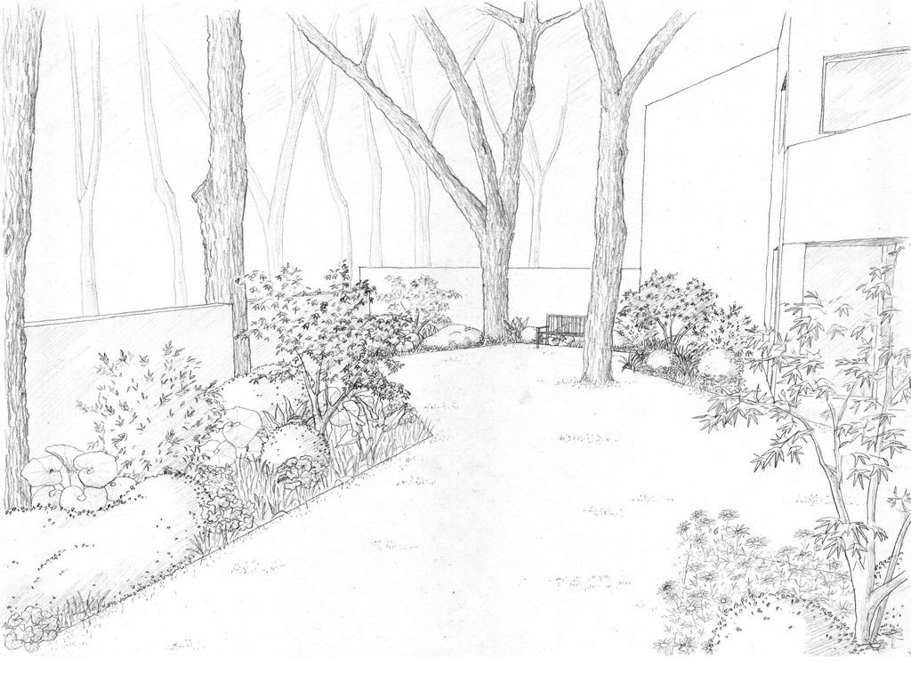 Интерьер сада карандашом