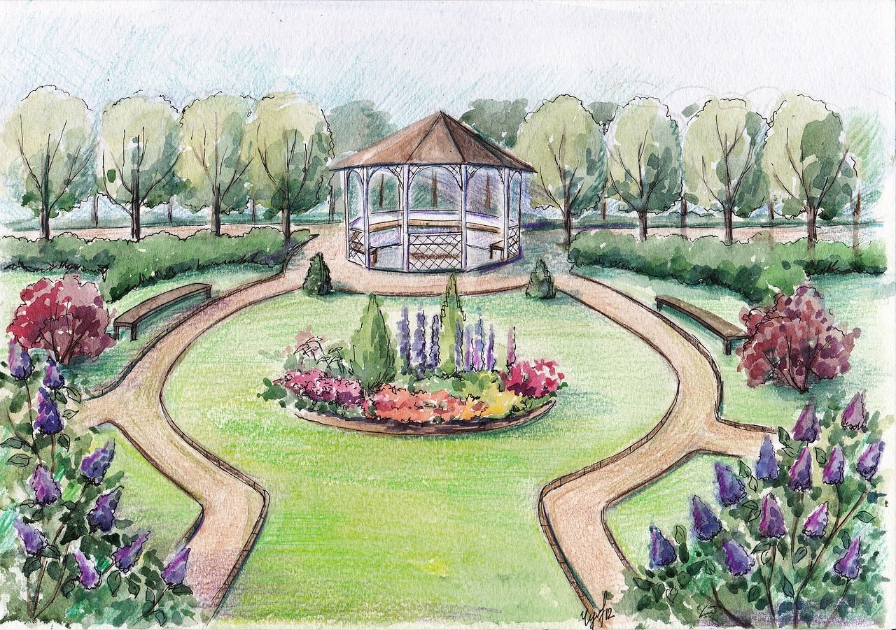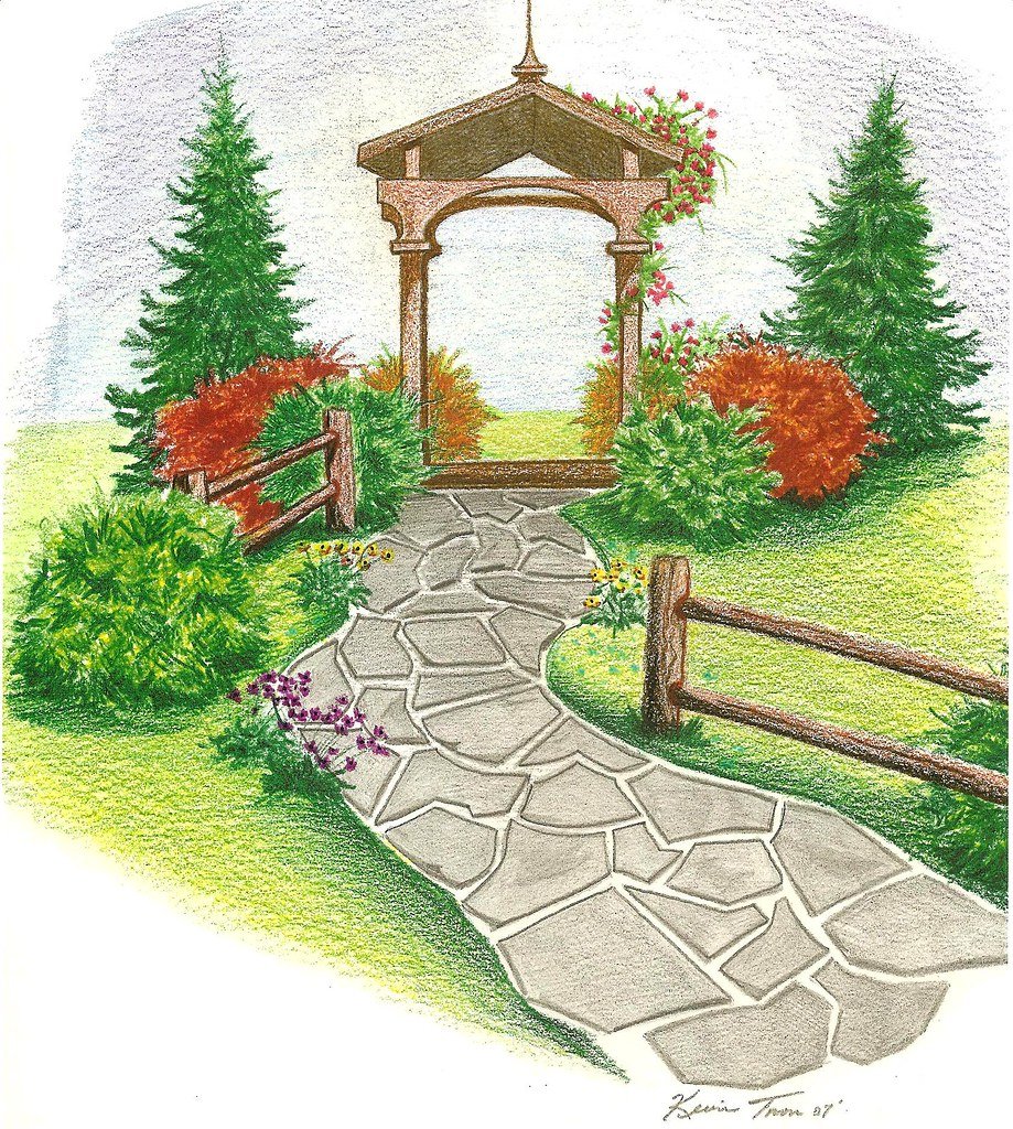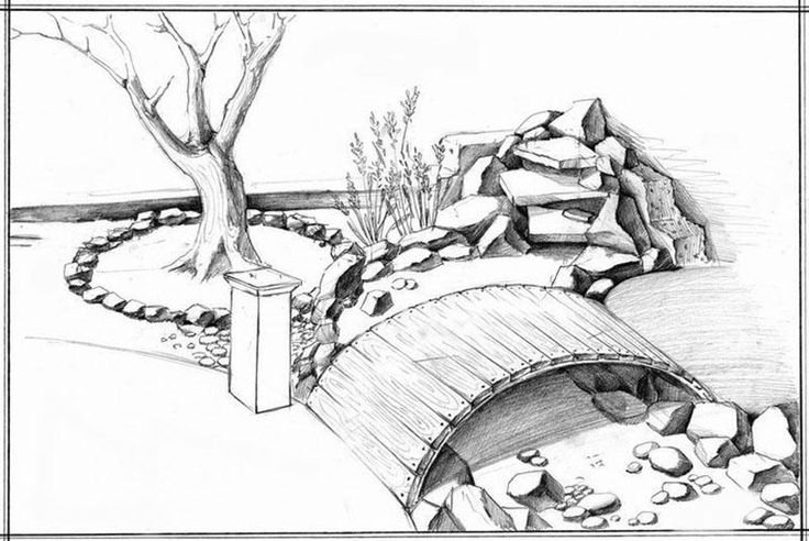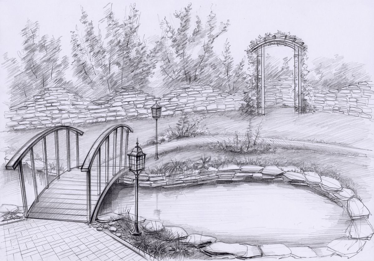 Ландшафт сада карандашом