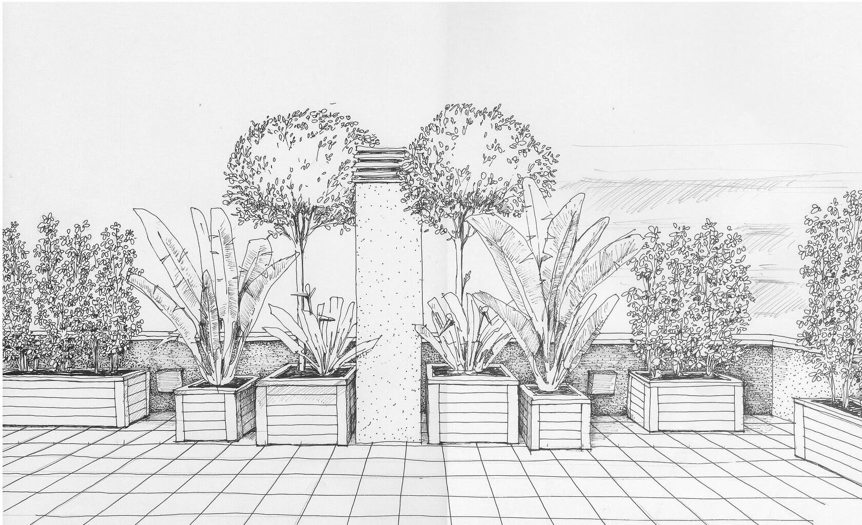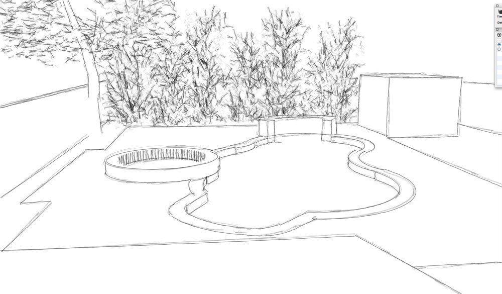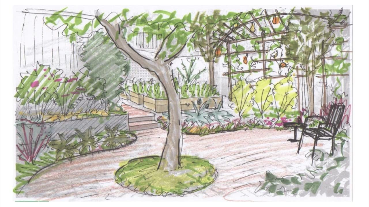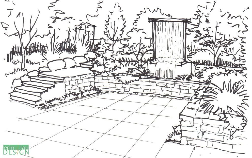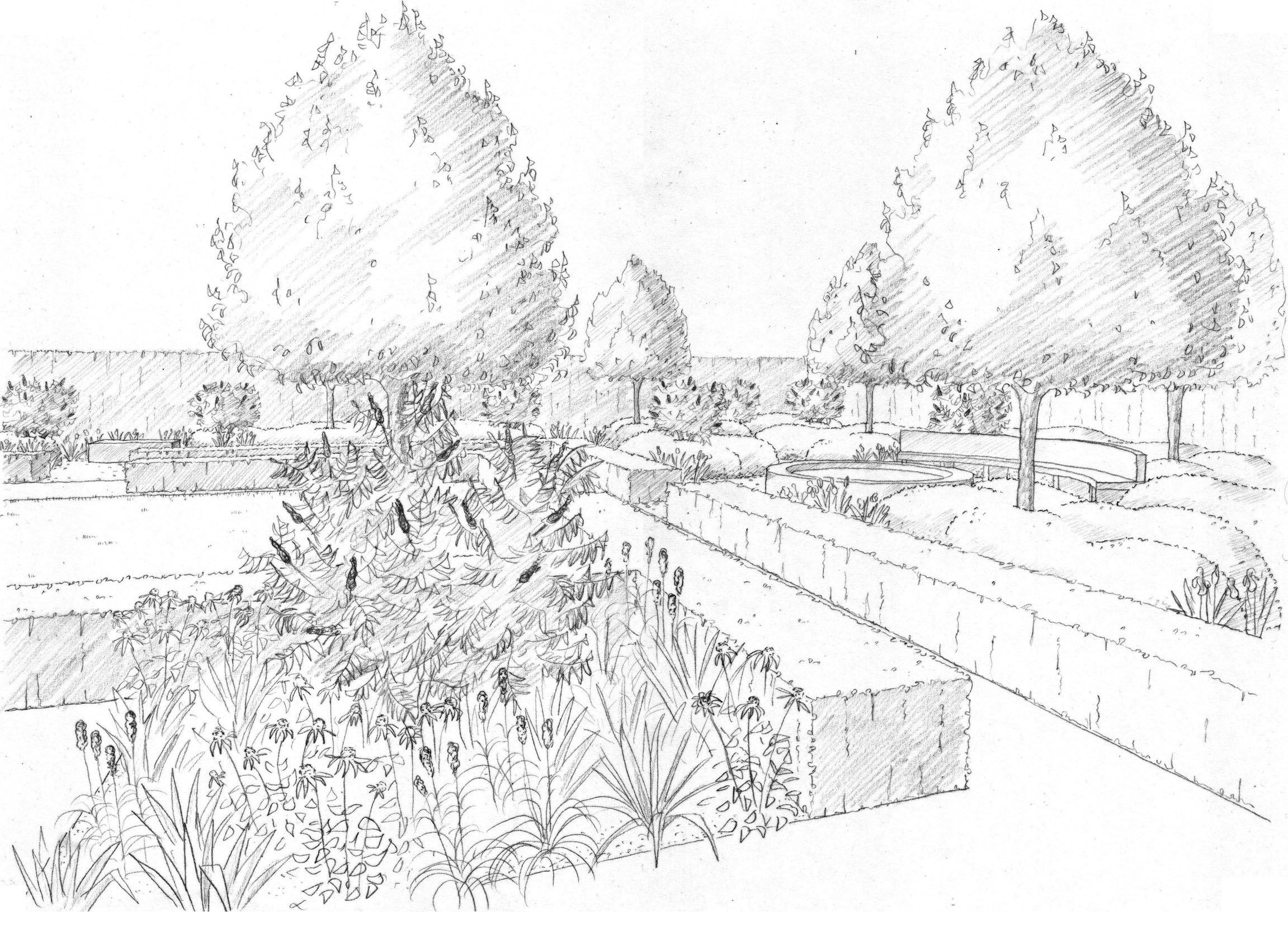 Ландшафт сада карандашом