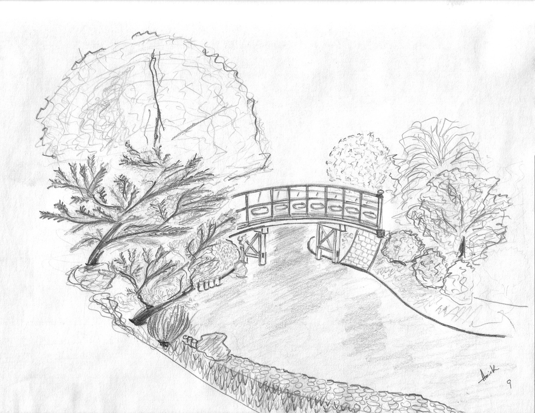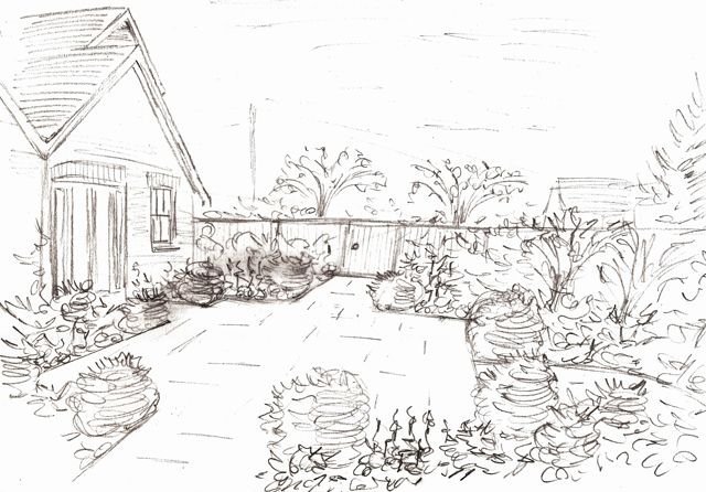 Эскиз сада карандашом