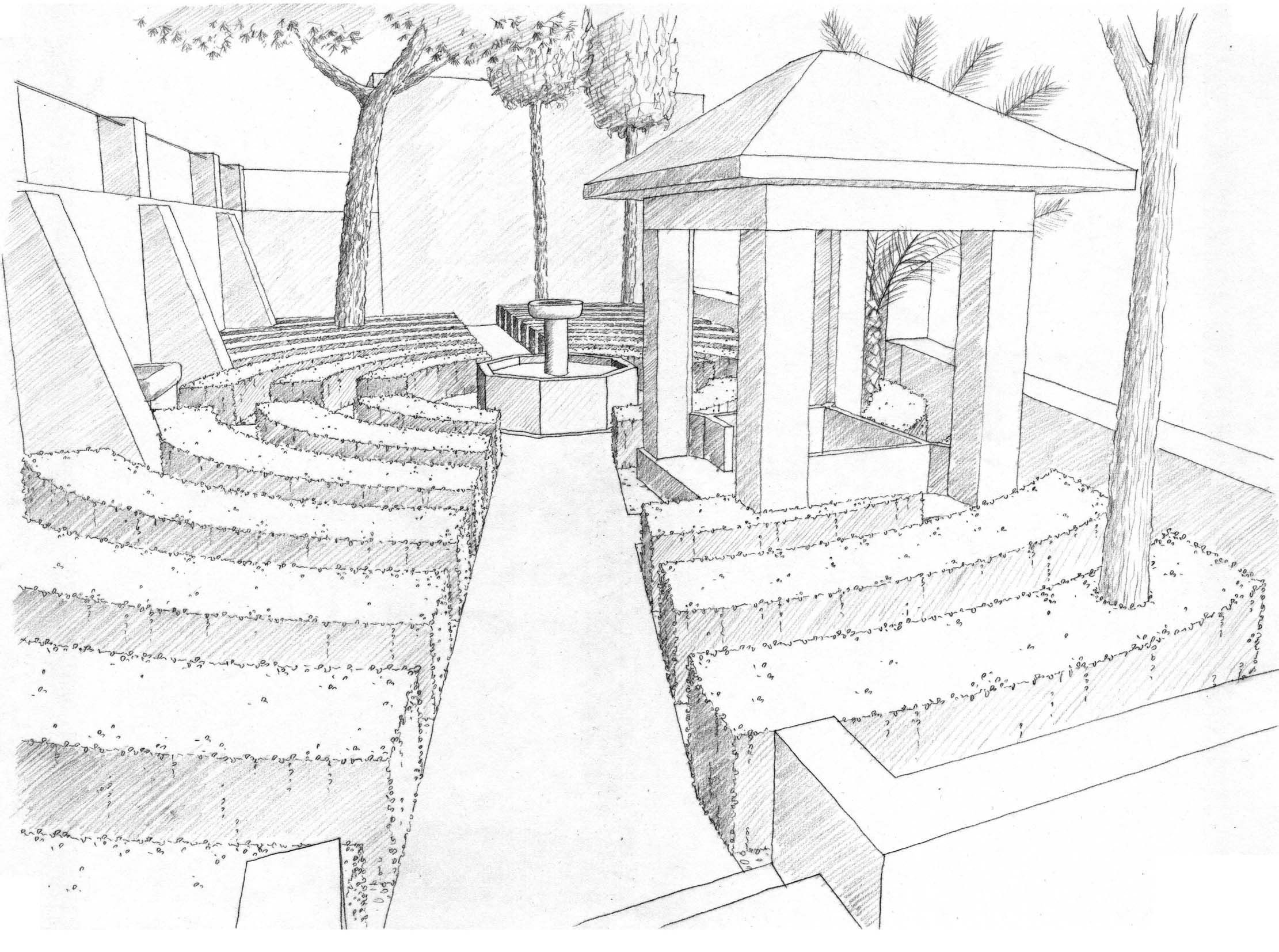Эскиз фонтана в парке