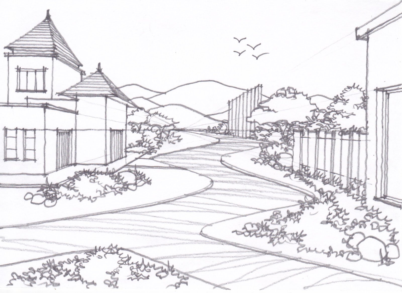 Ландшафтный эскиз карандашом