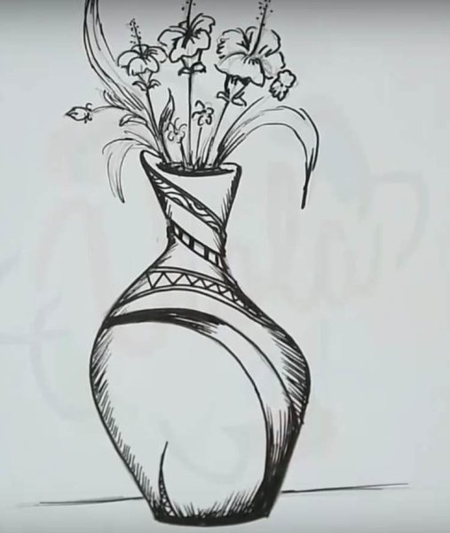 Ваза с цветами для срисовки