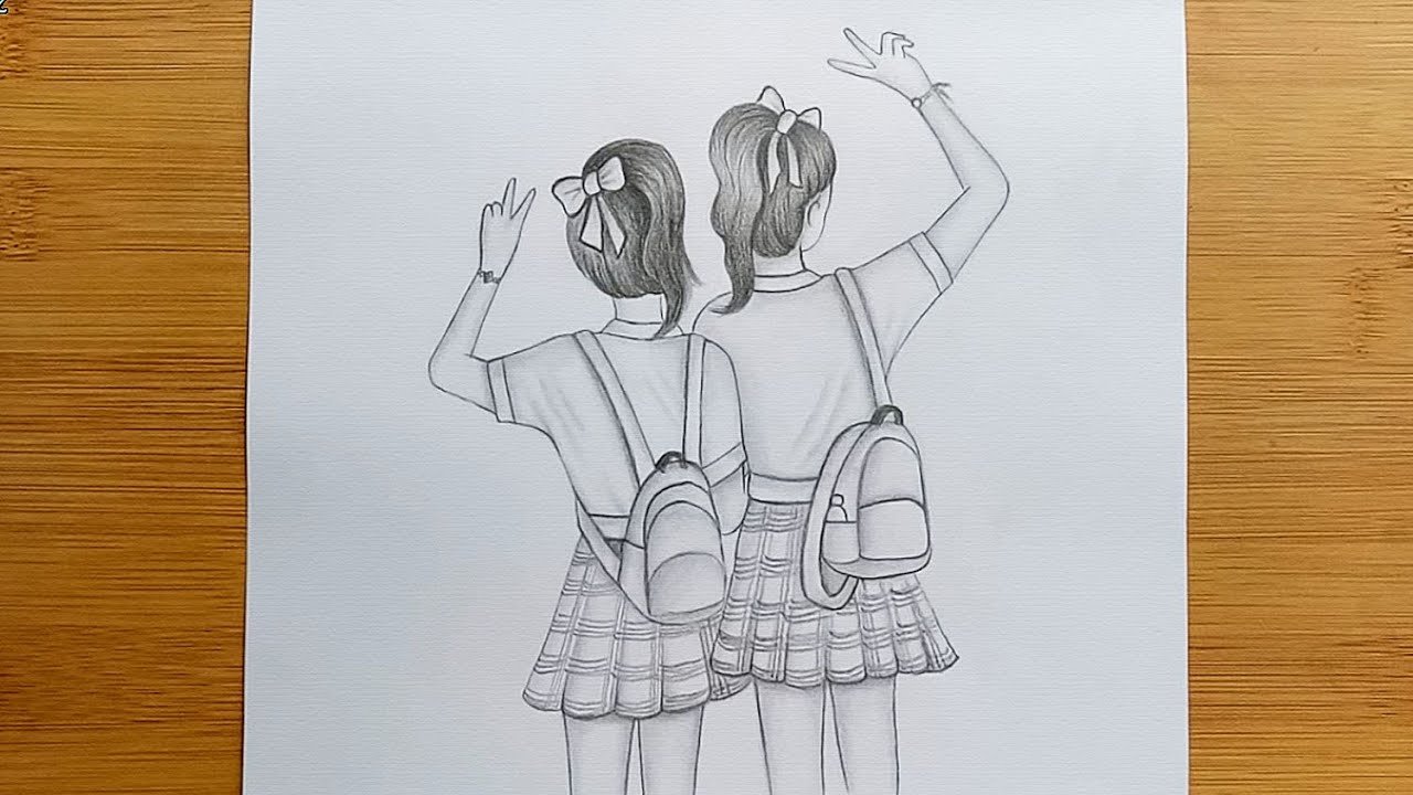 Две подруги рисунок карандашом