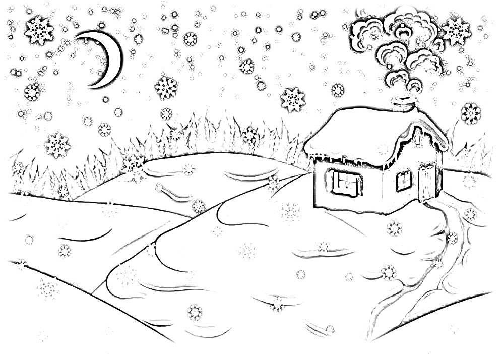 Домик в снегу раскраска для детей
