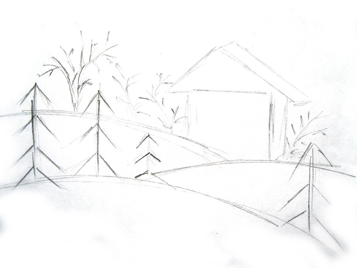 Зимний пейзаж карандашом для срисовки