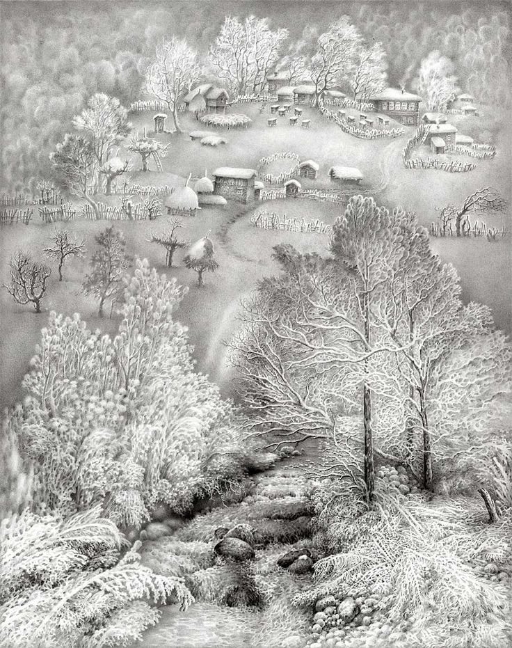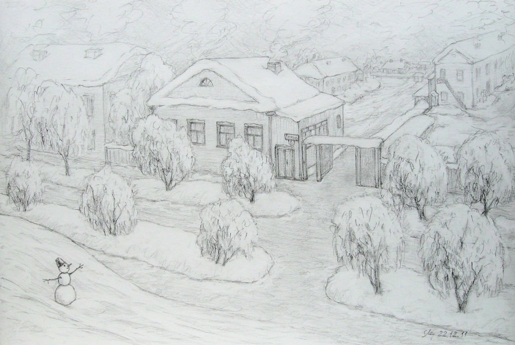 Зимний рисунок карандашом