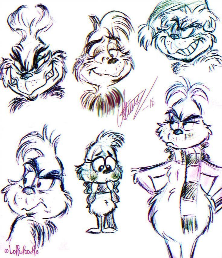 Гринч рисунок карандашом