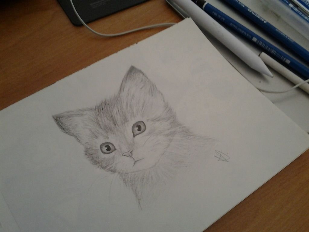 Рисунок котика карандашом на листе
