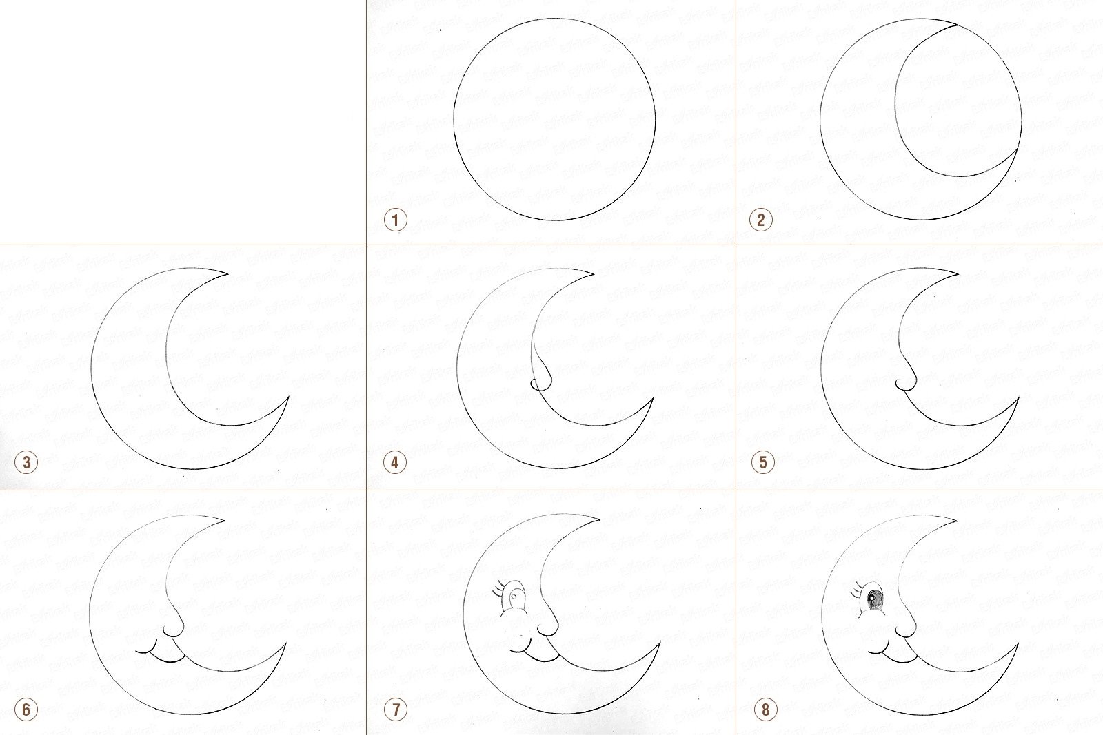 Нарисовать луну карандашом