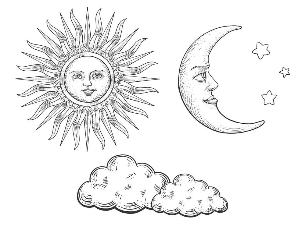 Солнце Луна звезды раскраска