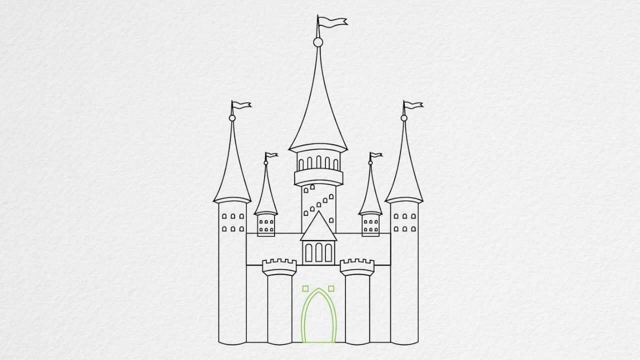 Поэтапное рисование замка для детей