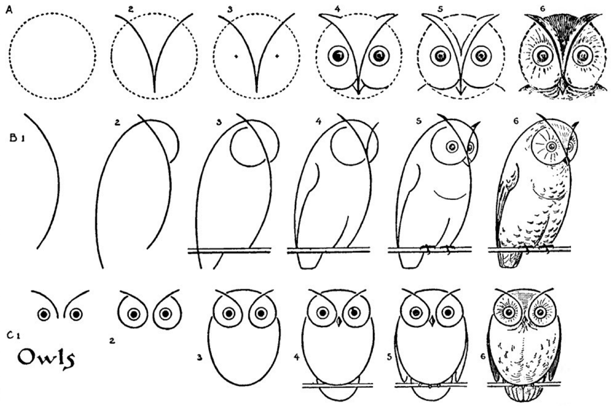 Поэтапное рисование Совы