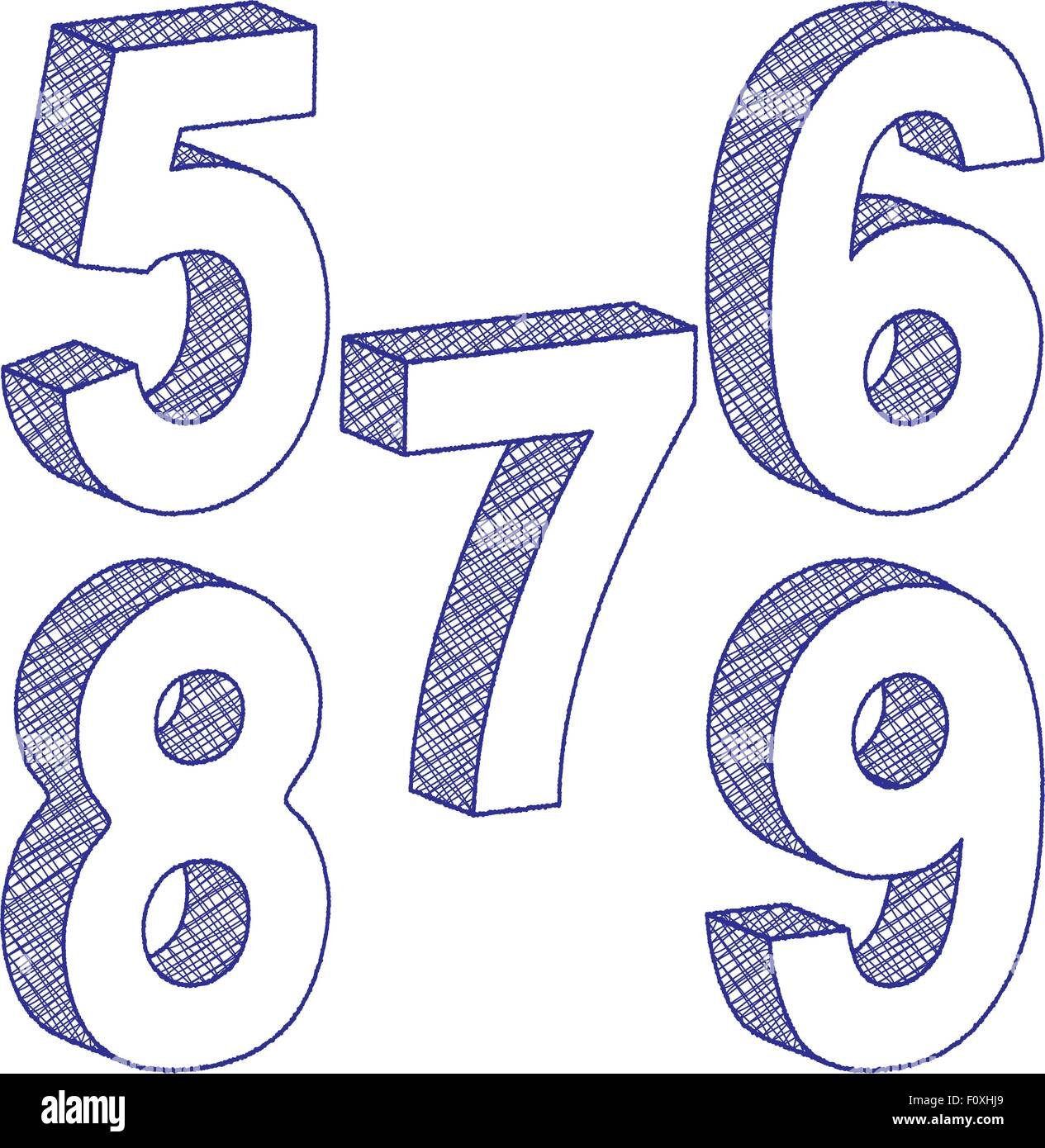 Объемные цифры карандашом