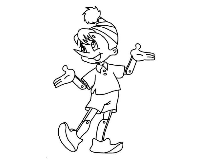 Буратино картинка для детей раскраска