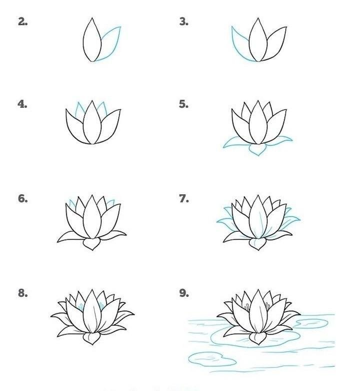 Лотос пошагово рисунок