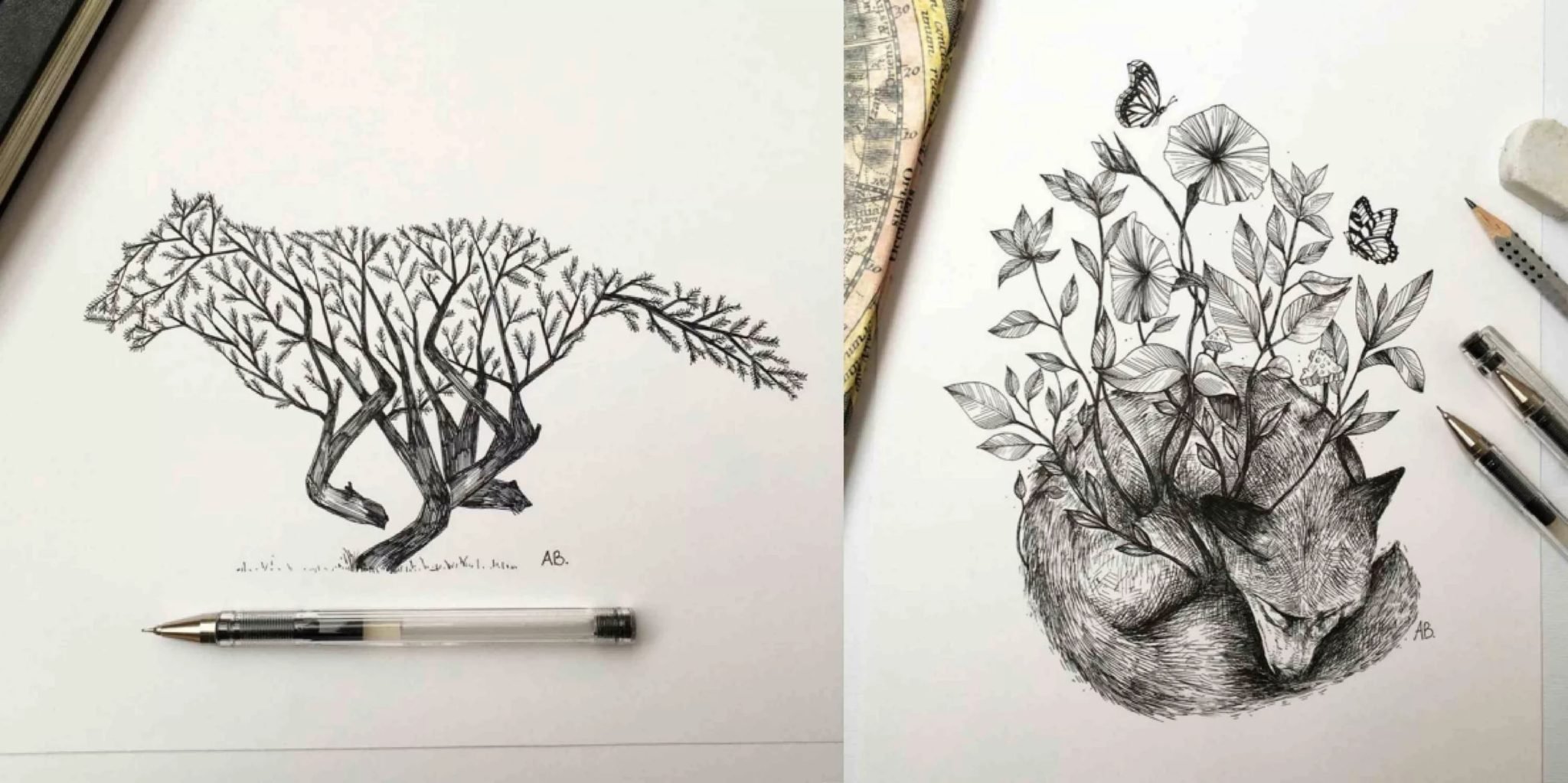 Рисунки чёрной гелевой ручкой