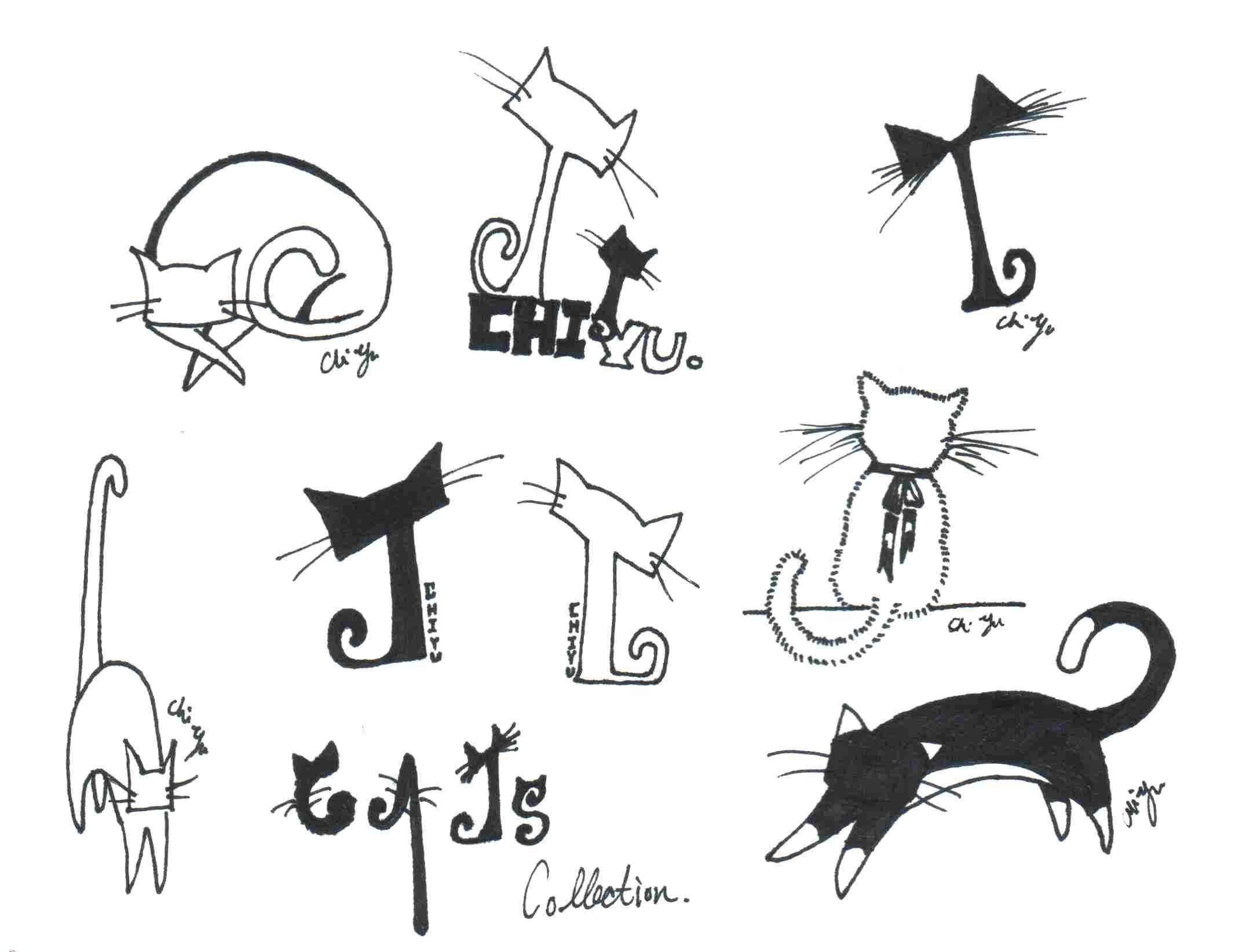 Рисунки черных кошек для срисовки