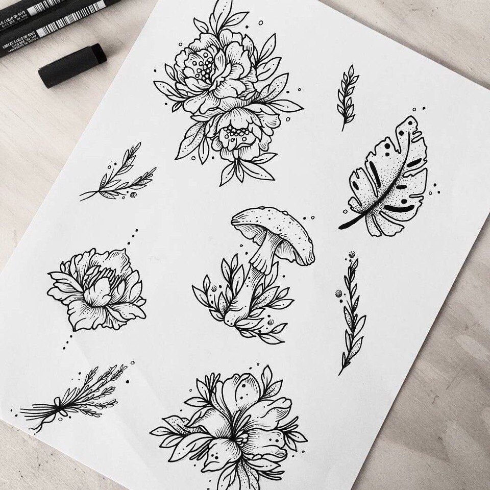 Тату растения эскизы