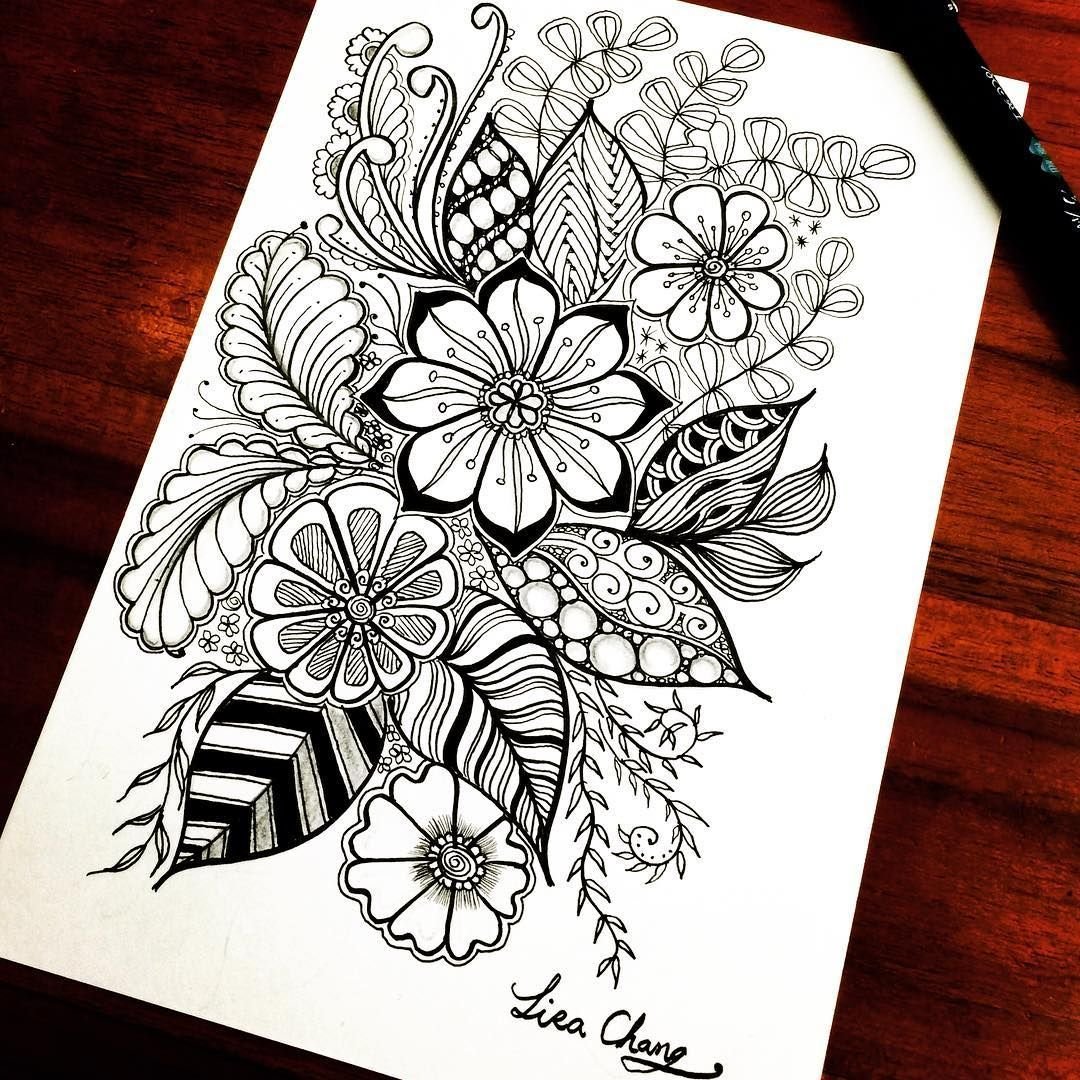 Цветы черной ручкой