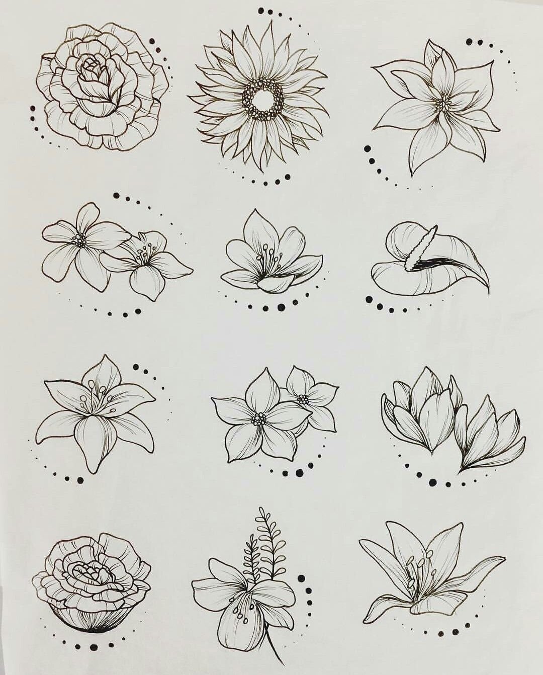 Эскизы цветов для тату