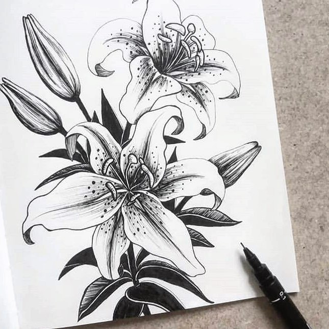 Лилия черной ручкой