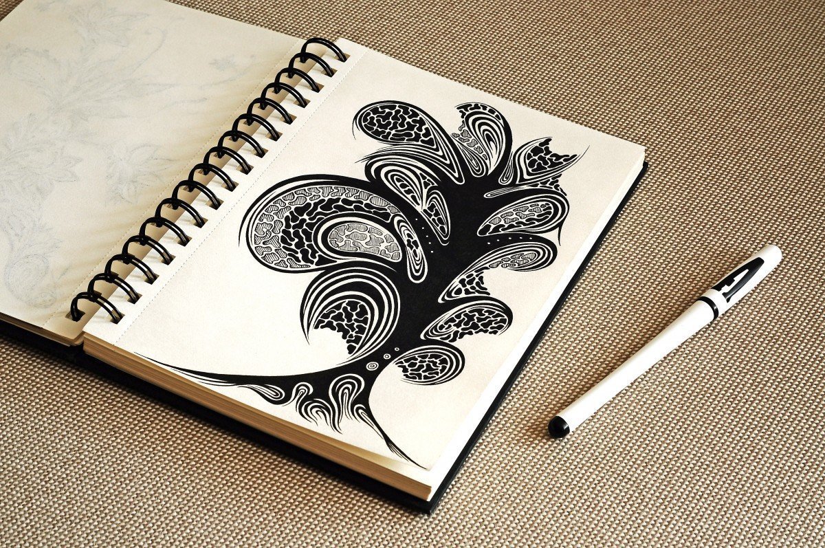 Скетчбук для рисования черной ручкой