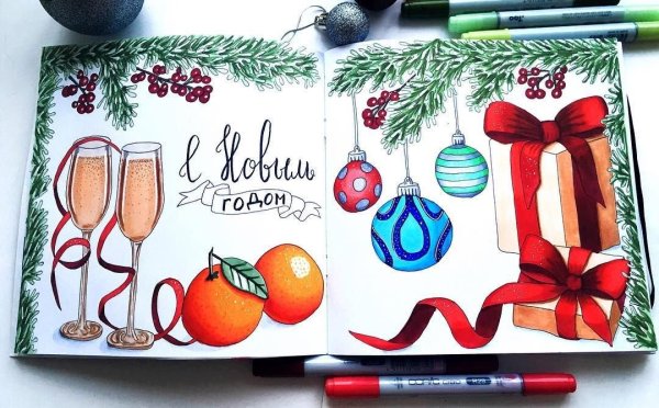 Новогодние рисунки для скетчбука