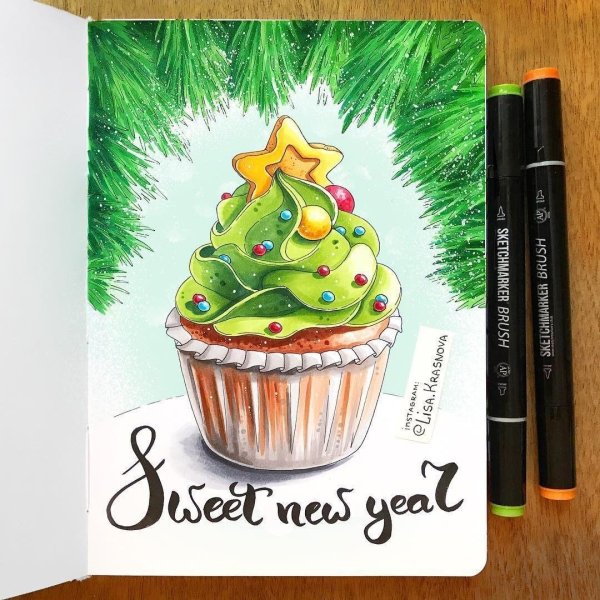 Новогодние идеи для рисования маркерами