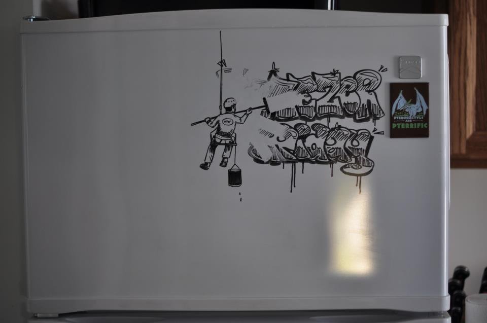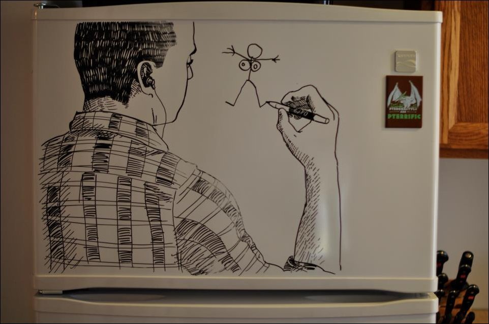 Рисунки на холодильнике маркером