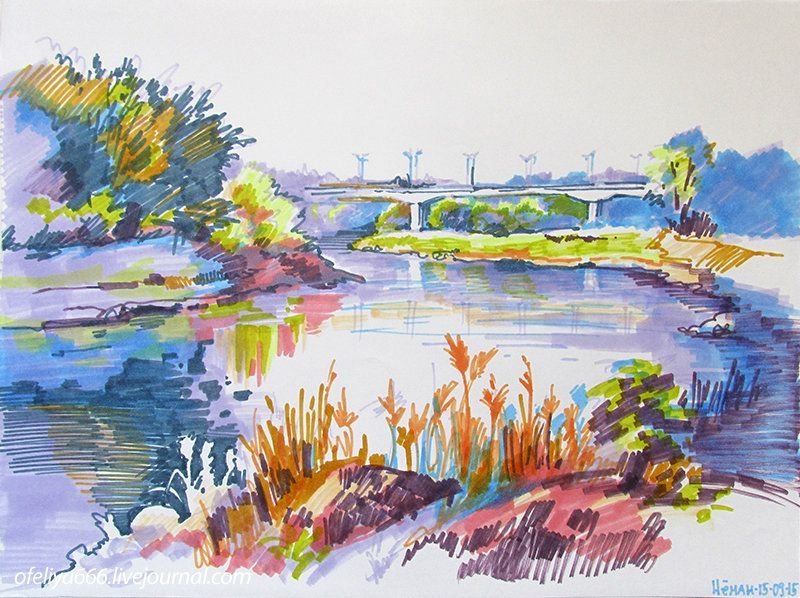 Лёгкие пейзажи маркерами