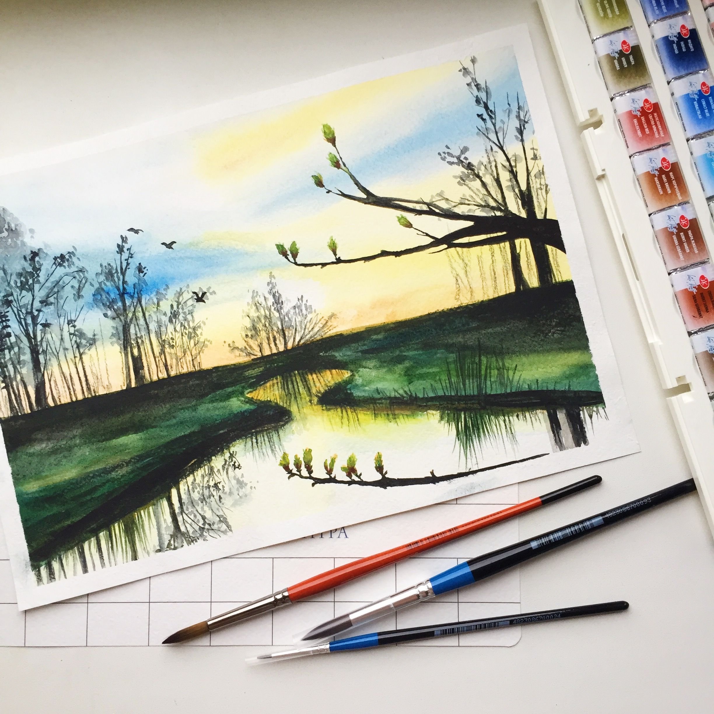 Мини пейзажи красками